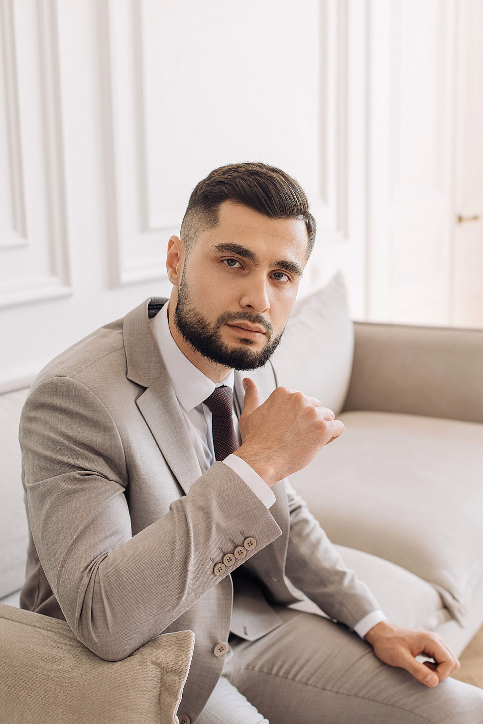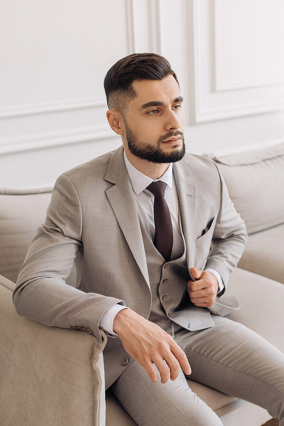 Костюм двойка бежевого цвета, повседневный и классический образ