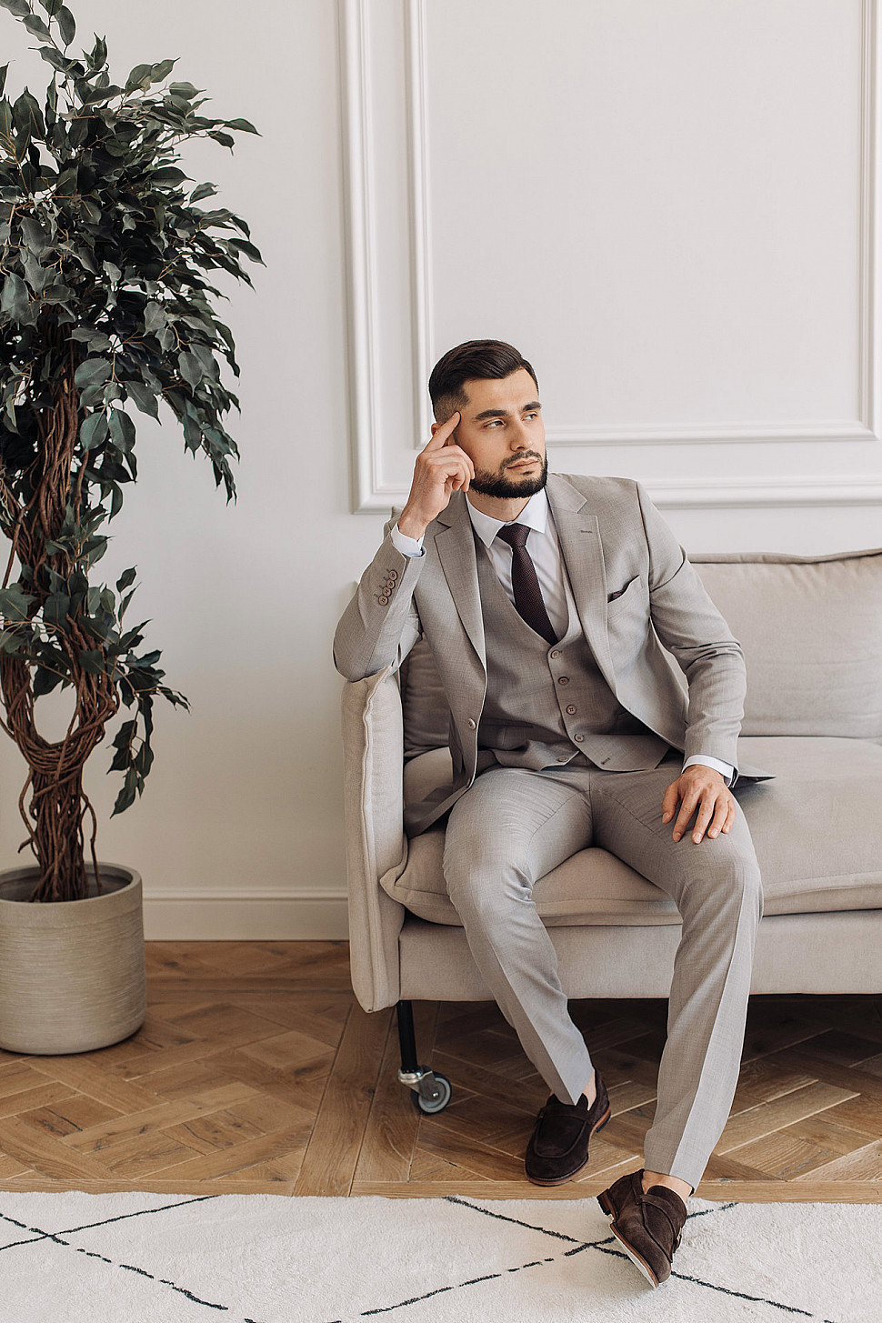 Мужской костюм тройка темно-фиолетовый, классический образ