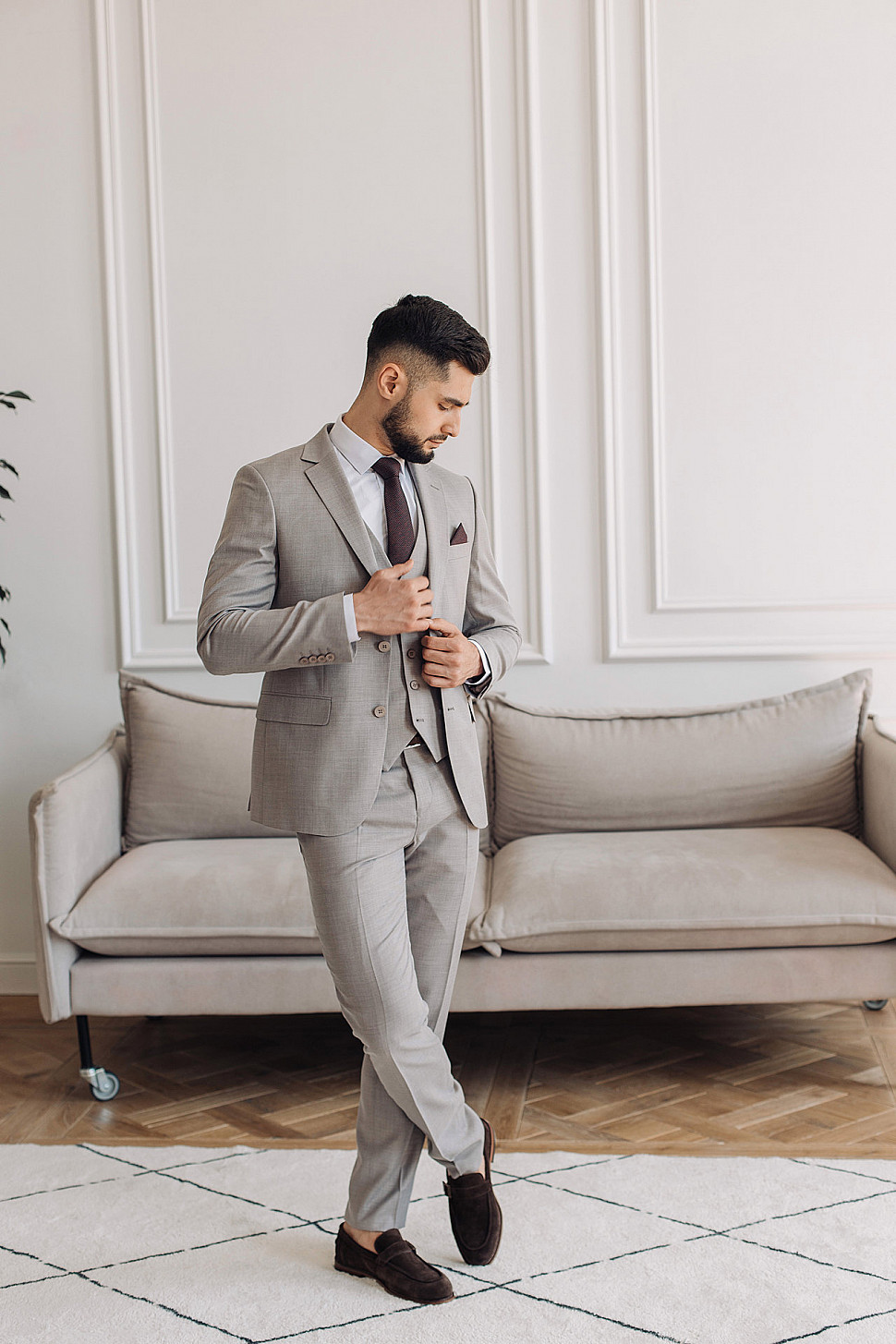 Костюм светло-коричневый двойка в клетку, повседневный и классический образ