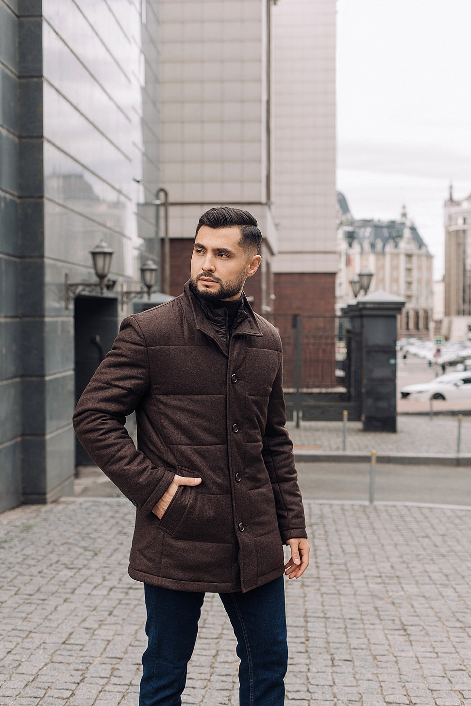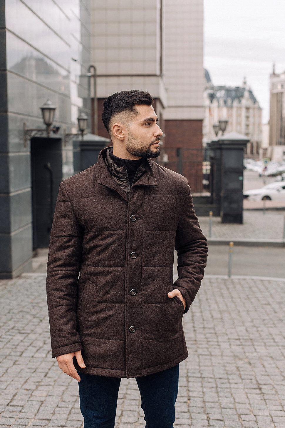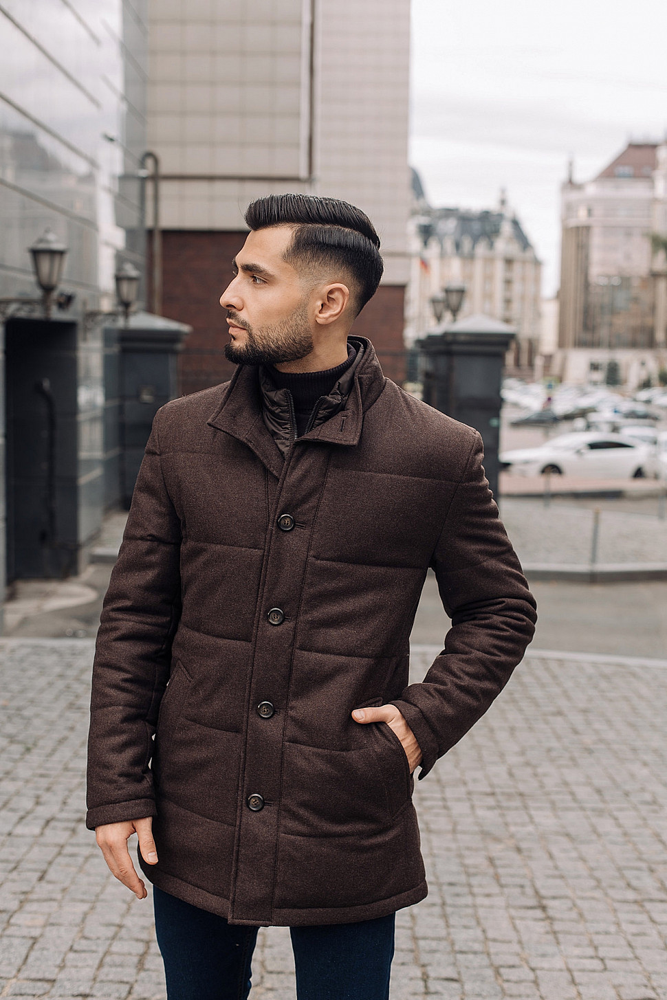 Мужское пальто коричневого цвета