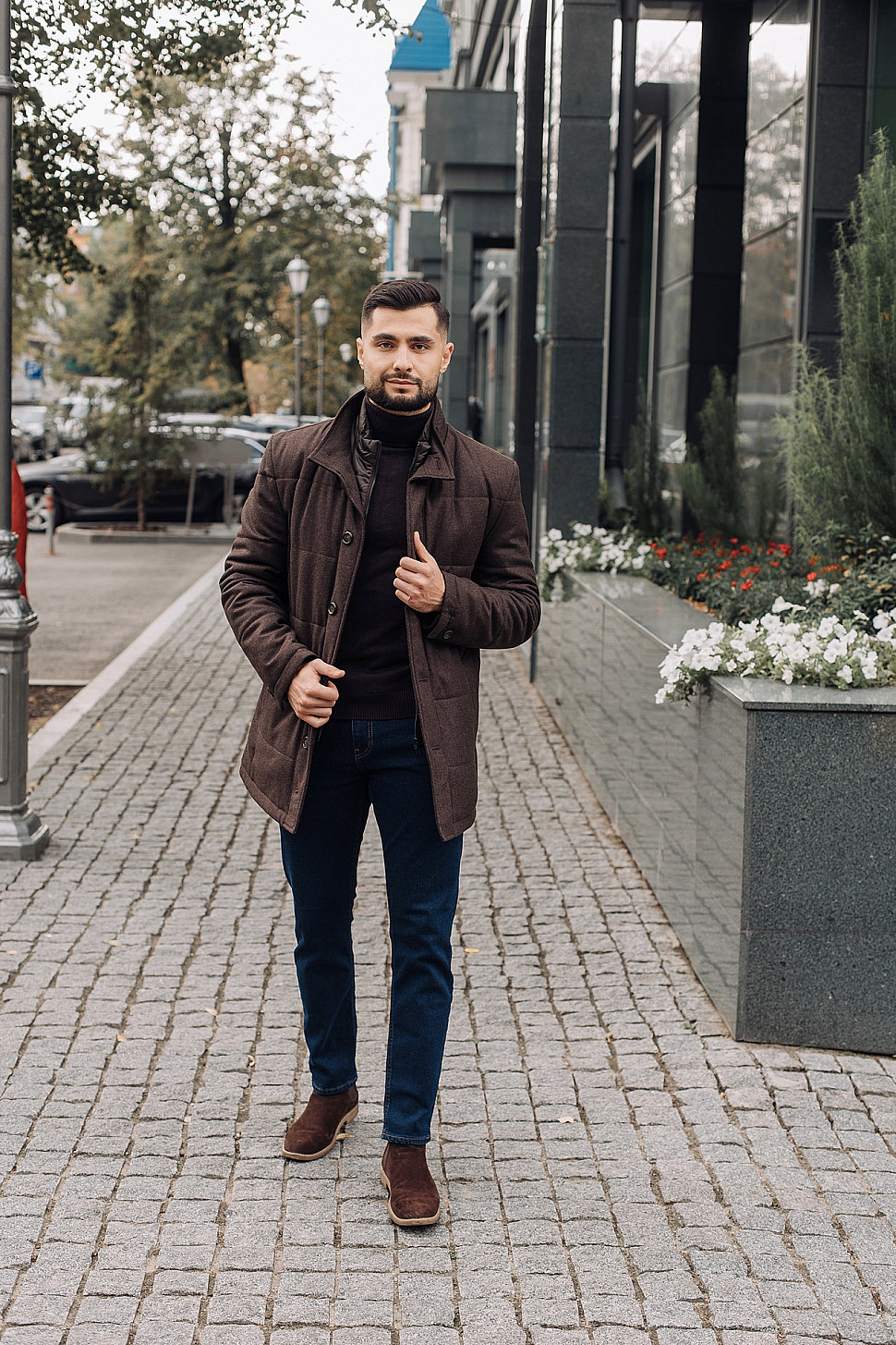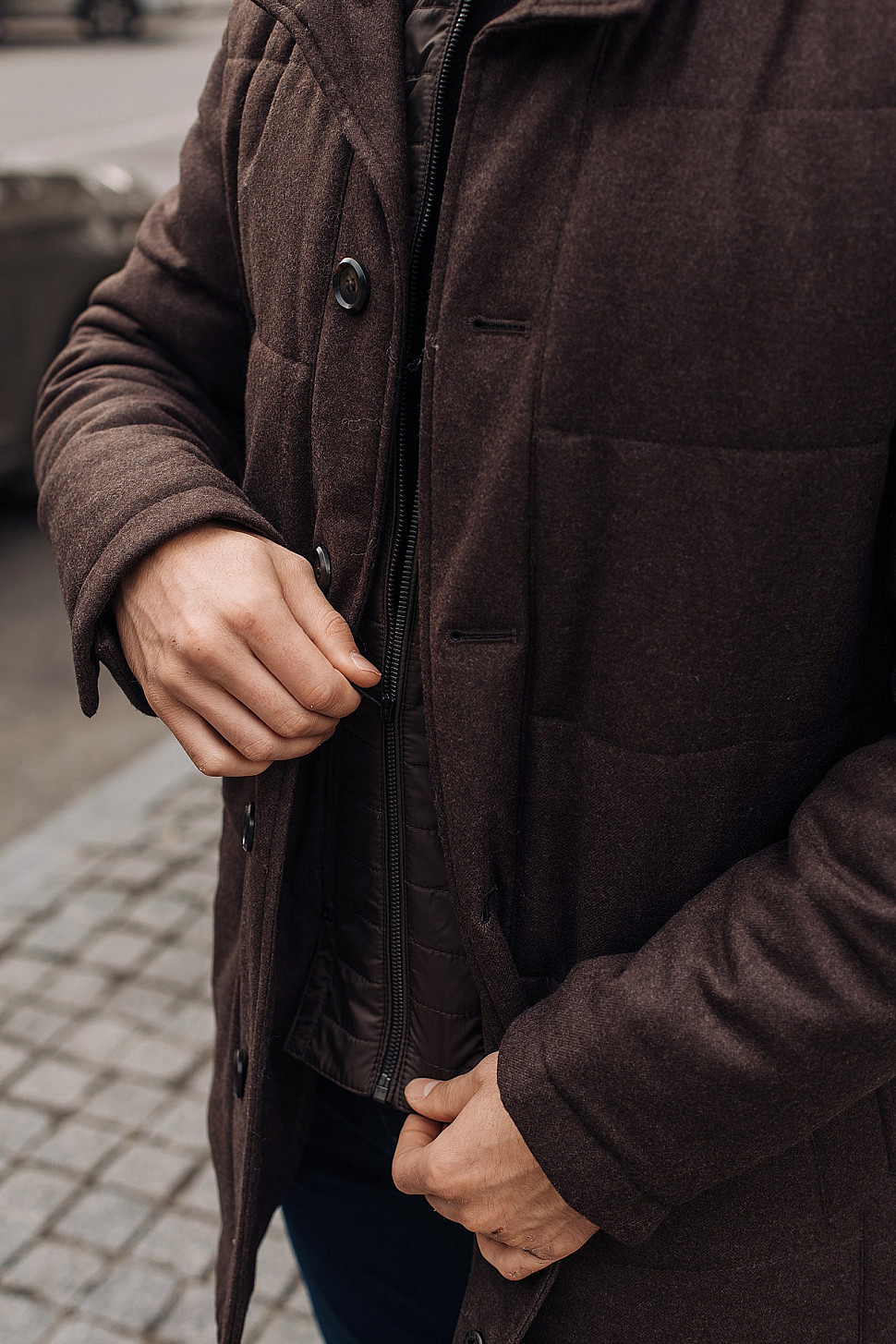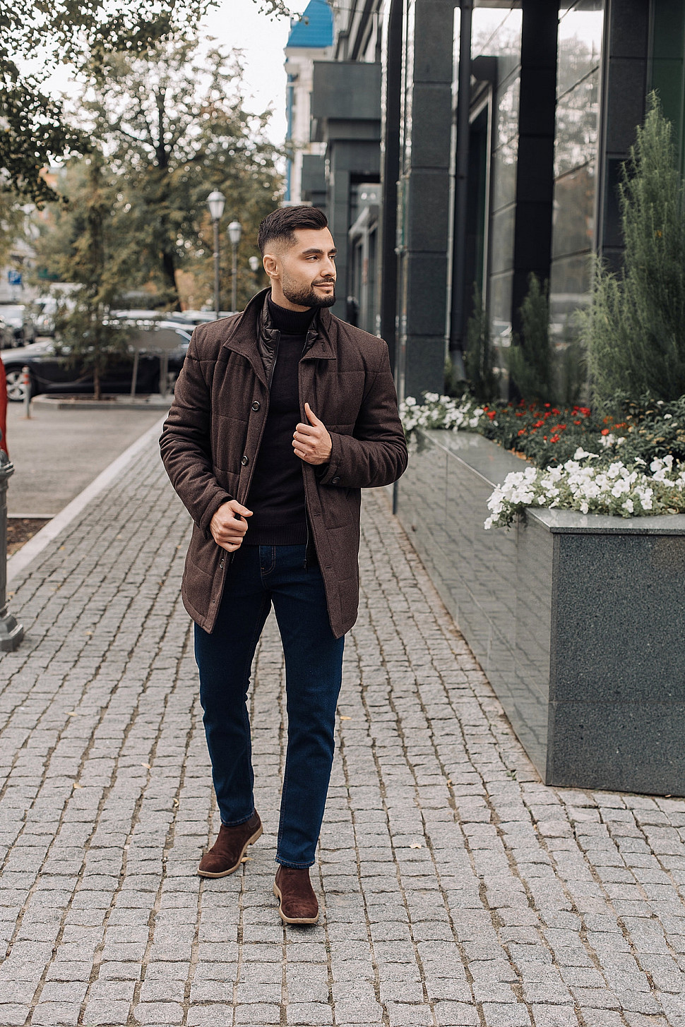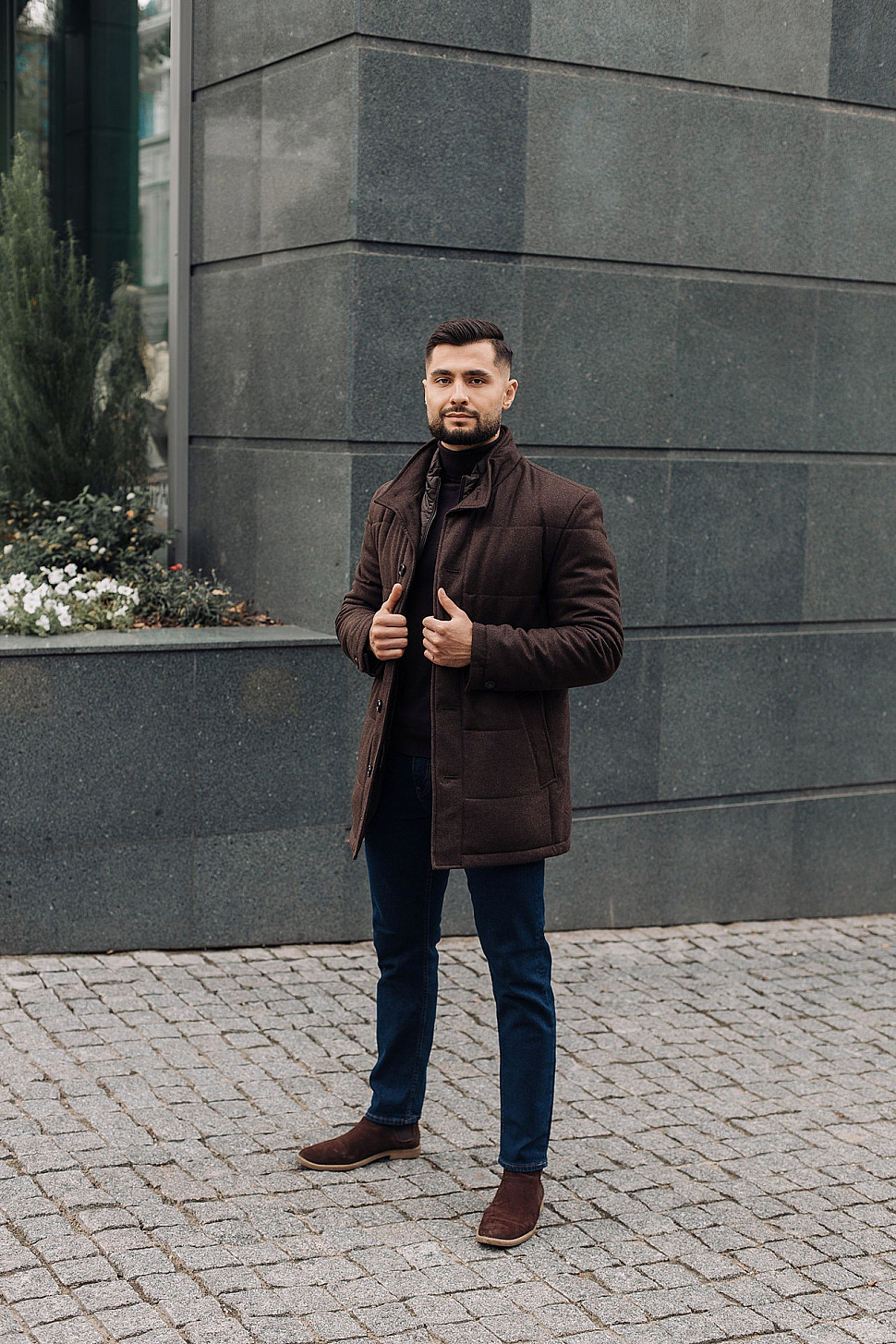 Мужское пальто коричневого цвета
