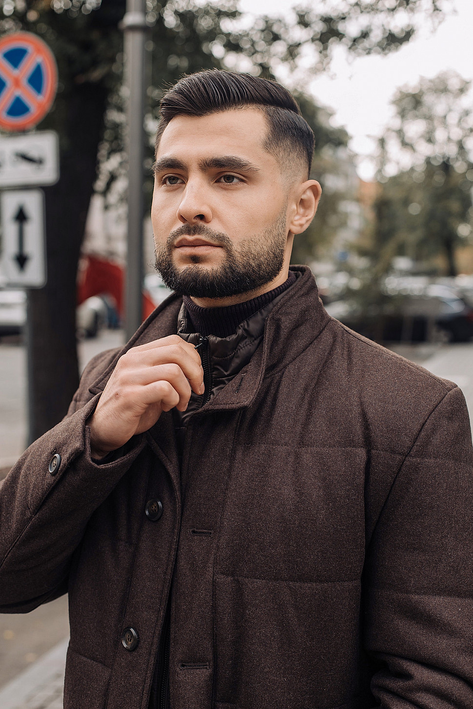 Мужская куртка темно-коричневого цвета с меховым воротником