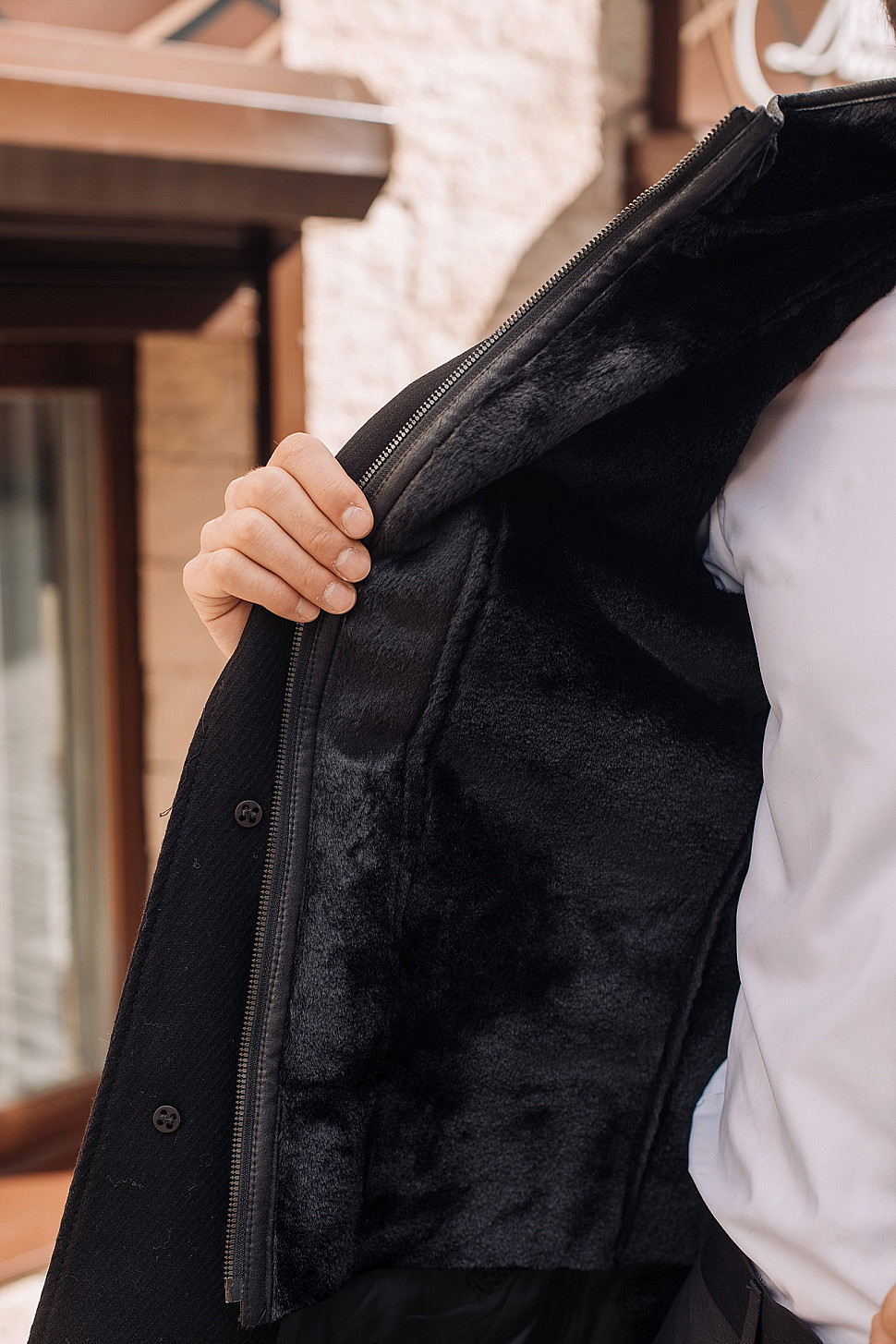 Мужская куртка коричневого цвета с меховым воротником