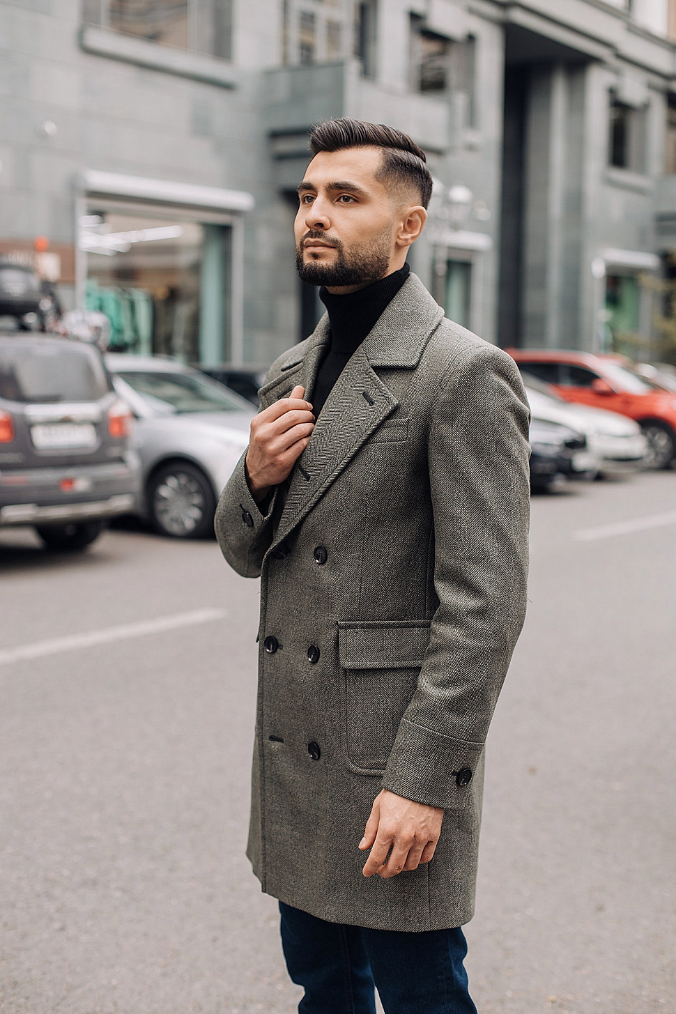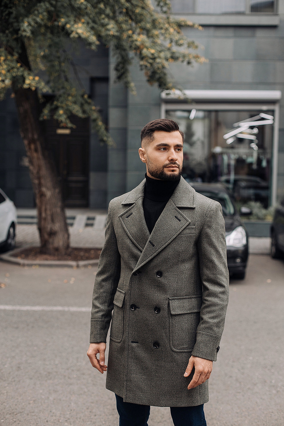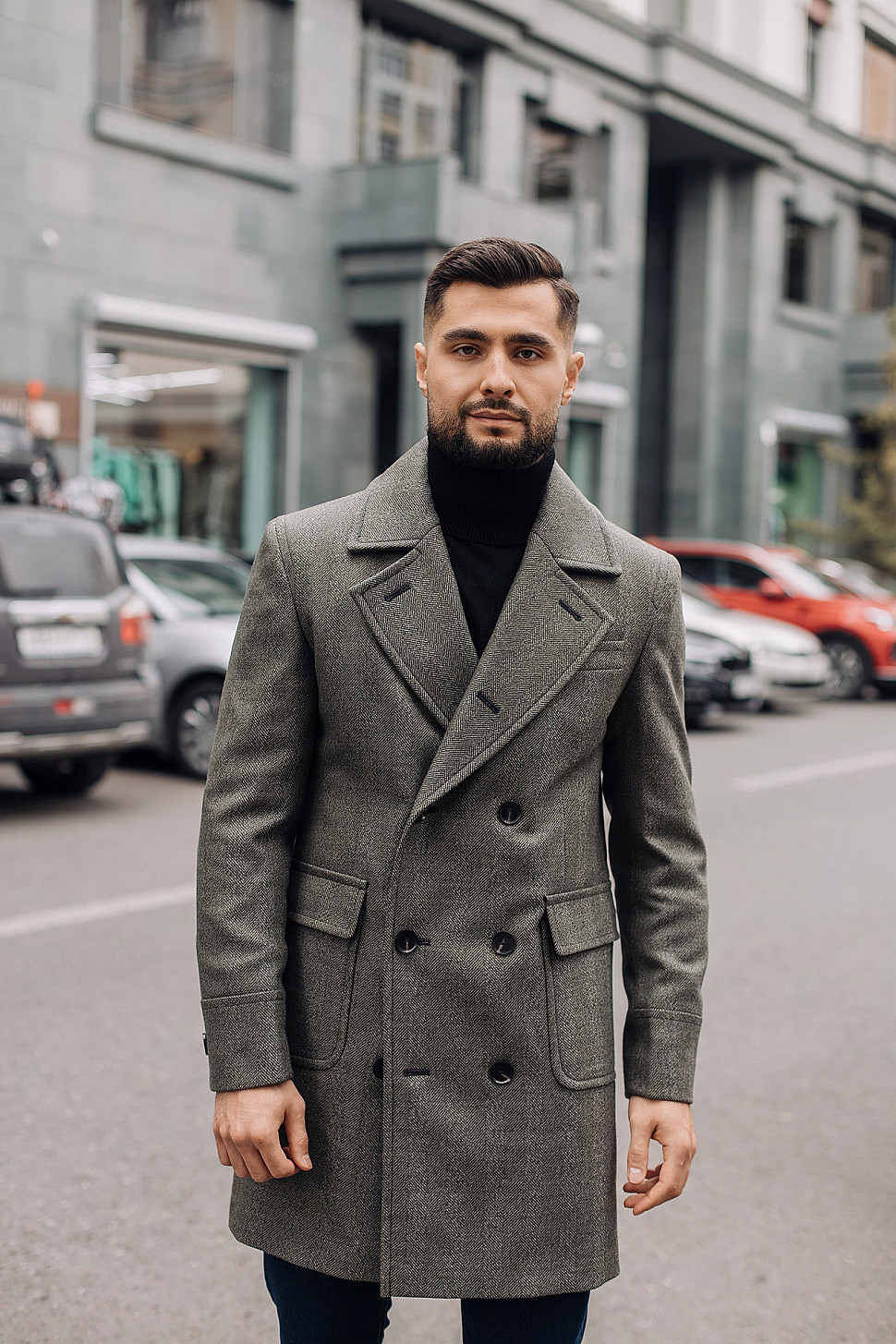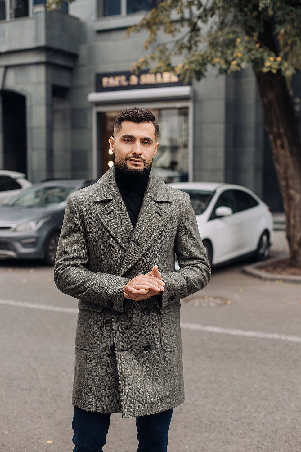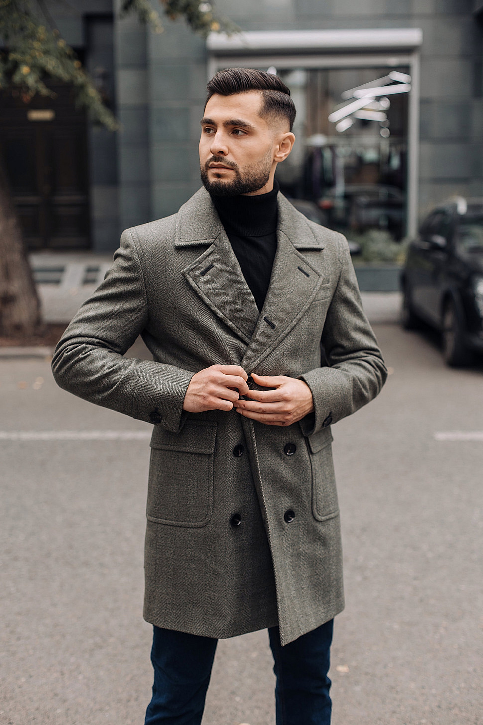 Мужской костюм двойка серый двубортный с золотыми пуговицами
