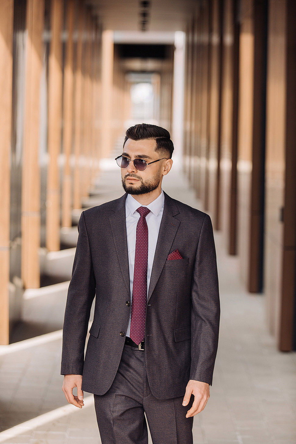 Мужской костюм тройка бордового цвета фактурный