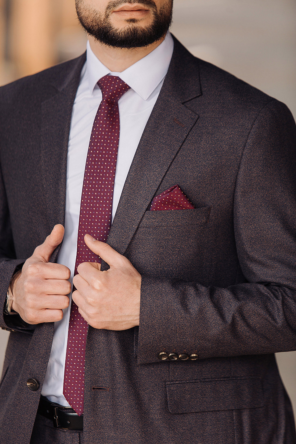 Костюм мужской тройка темно-бордового цвета фактурный