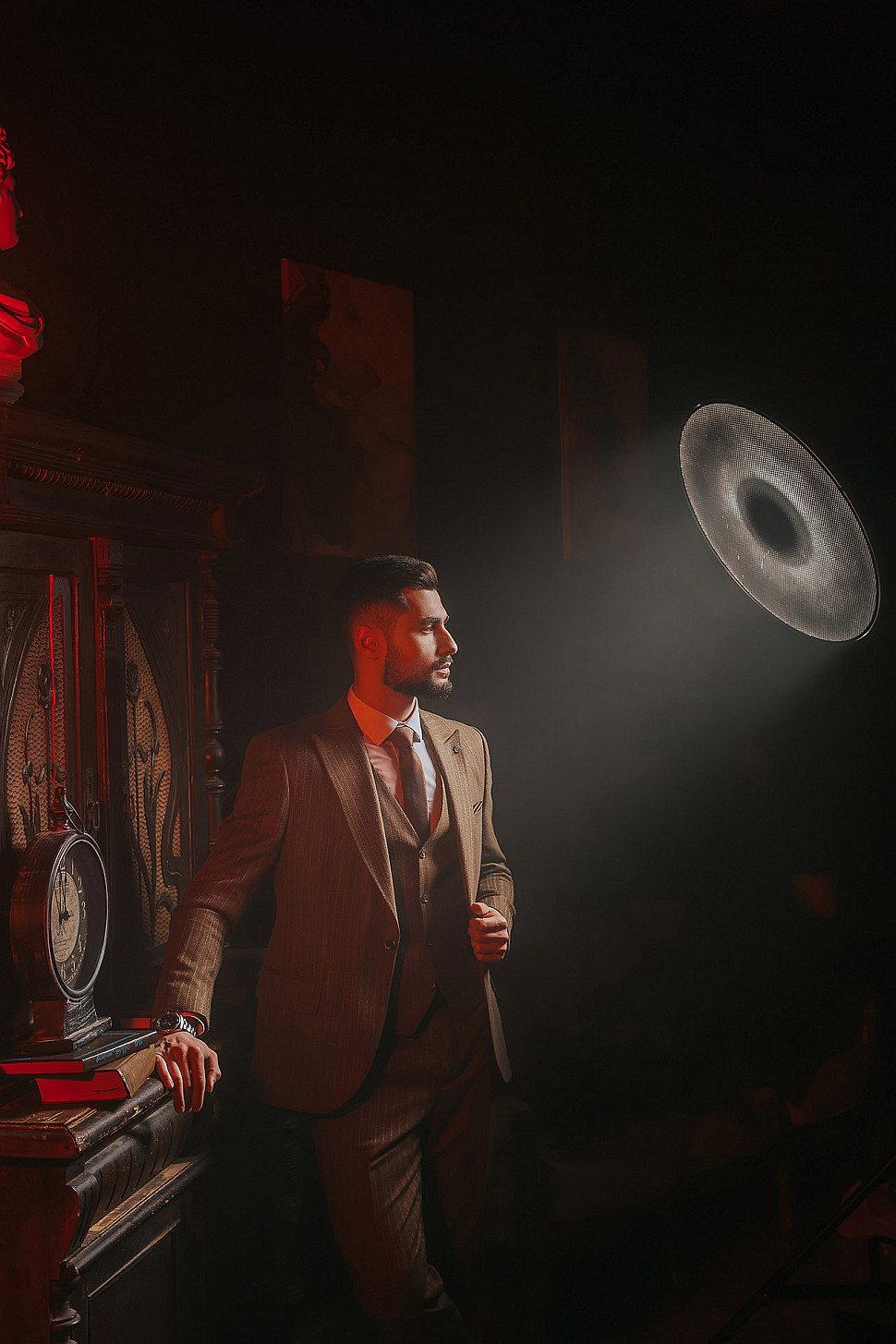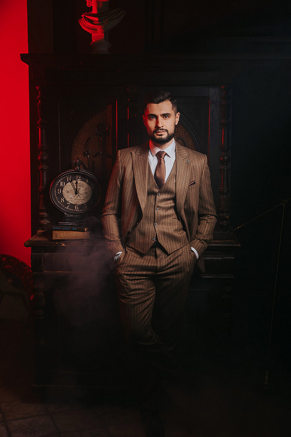 Мужской костюм тройка темно-фиолетовый, классический образ