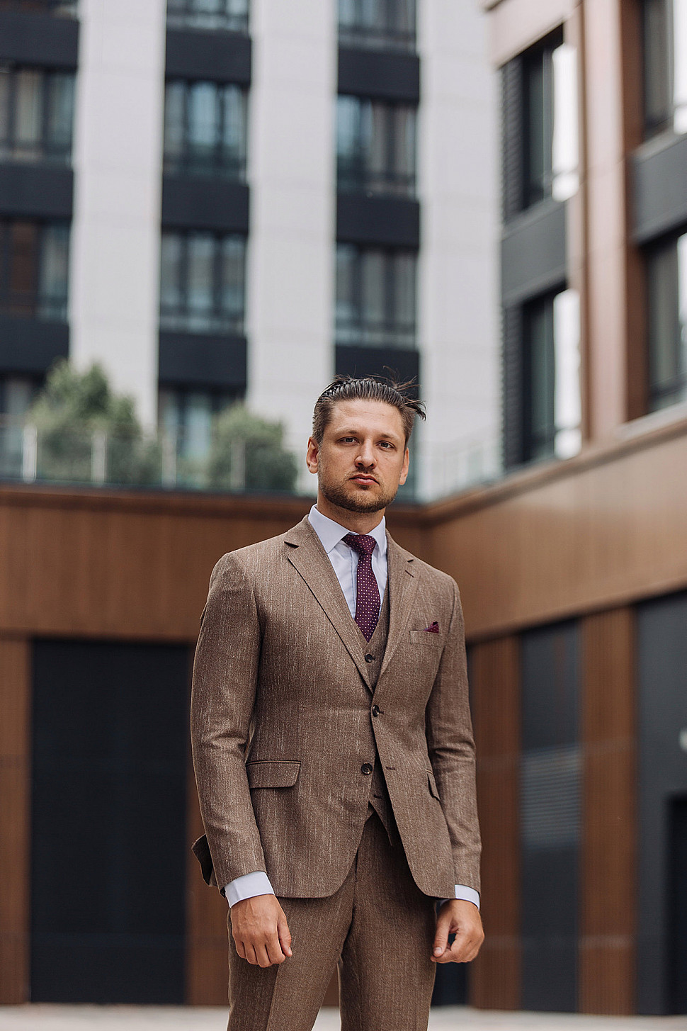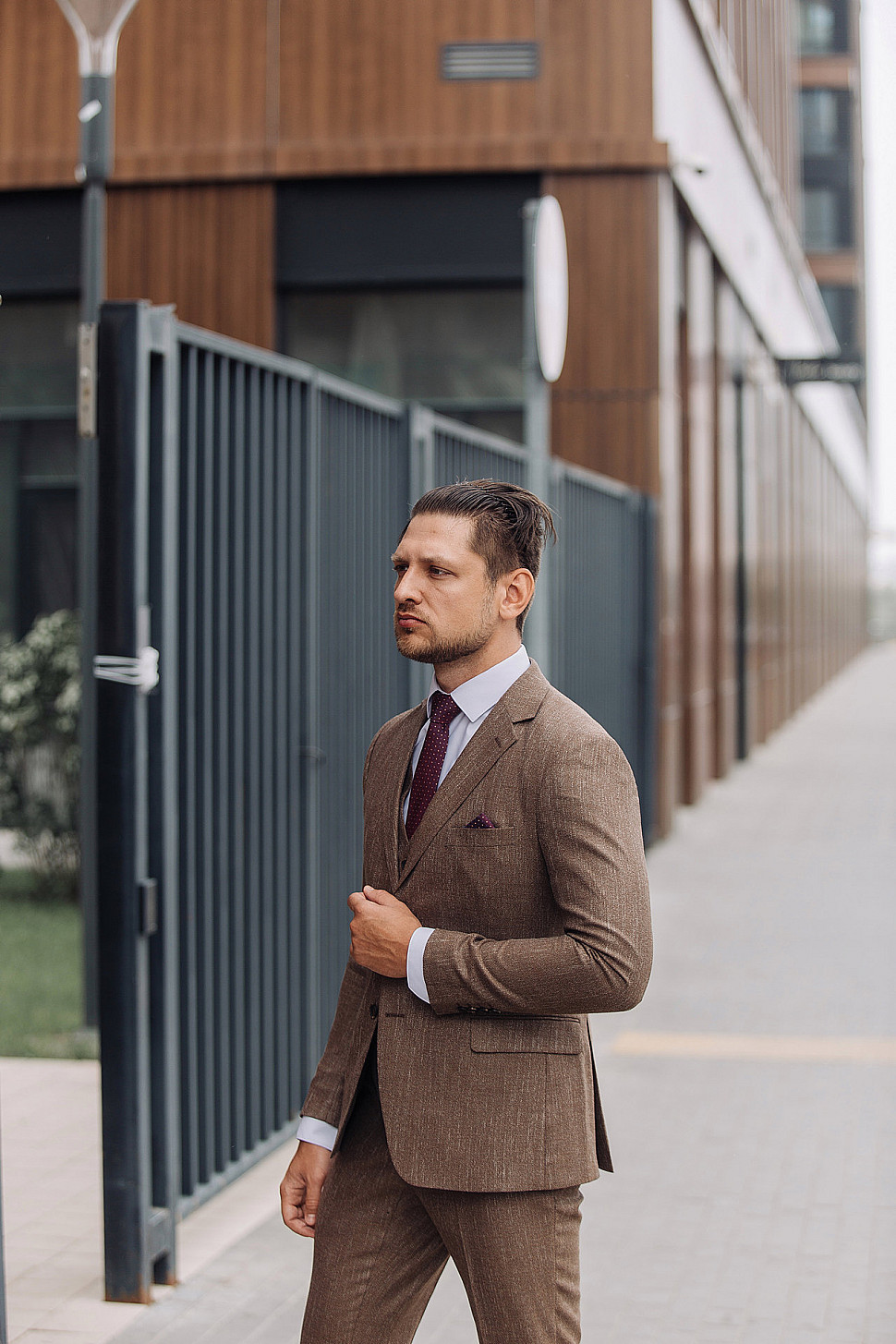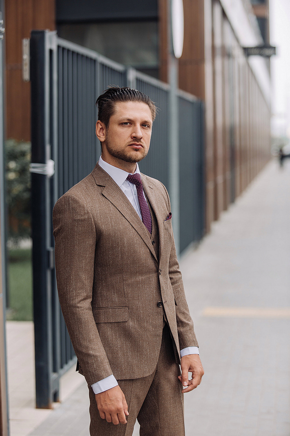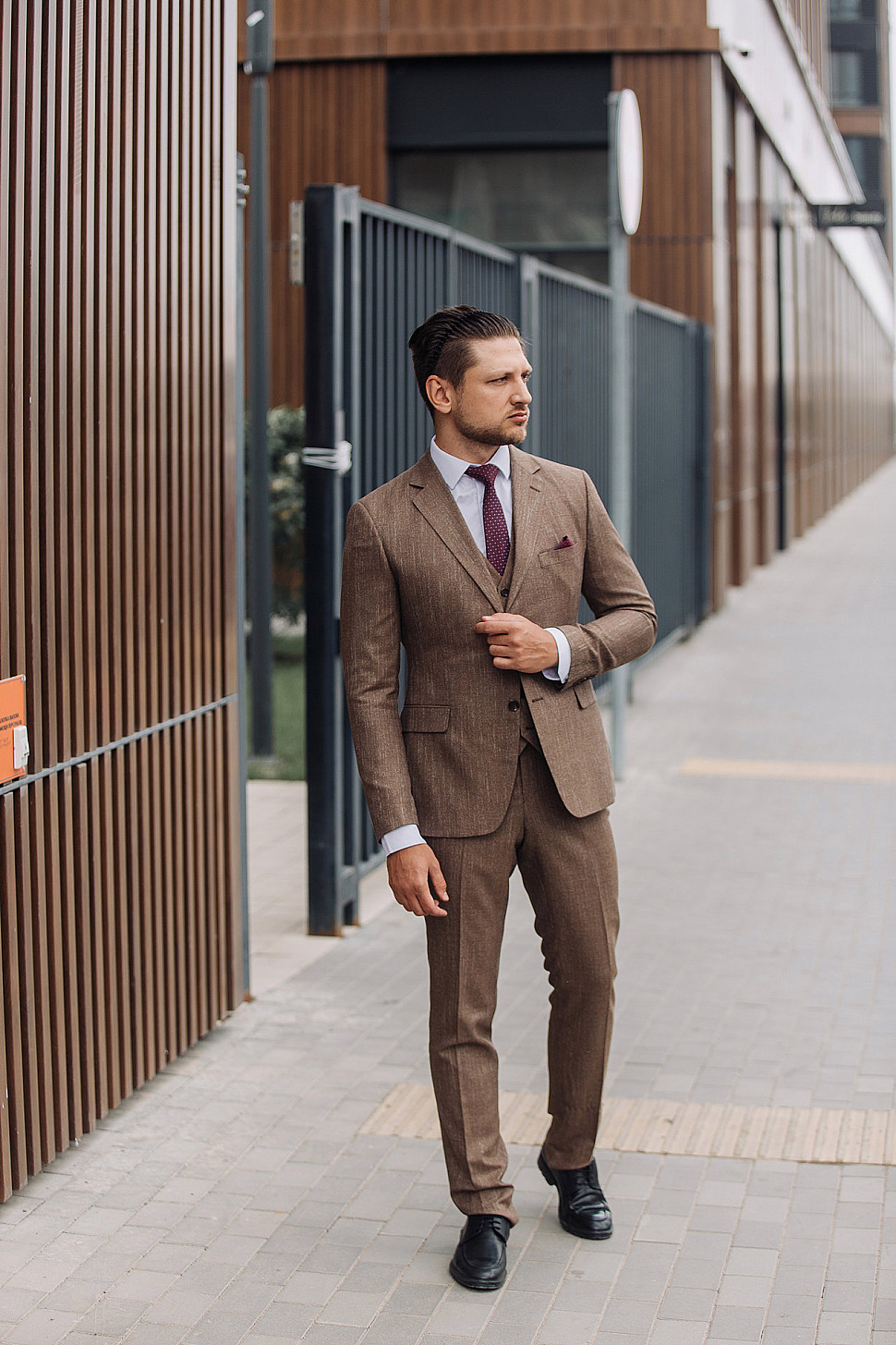 Мужской костюм двойка коричневого цвета в стиле кэжуал