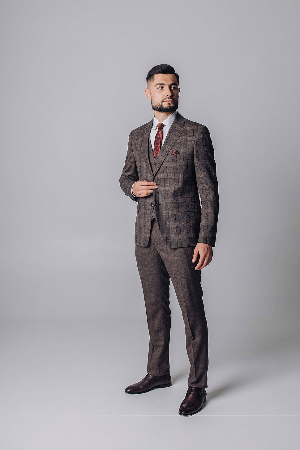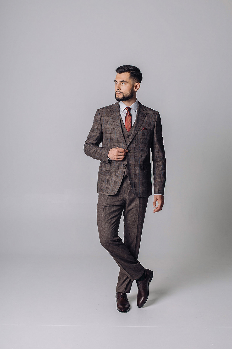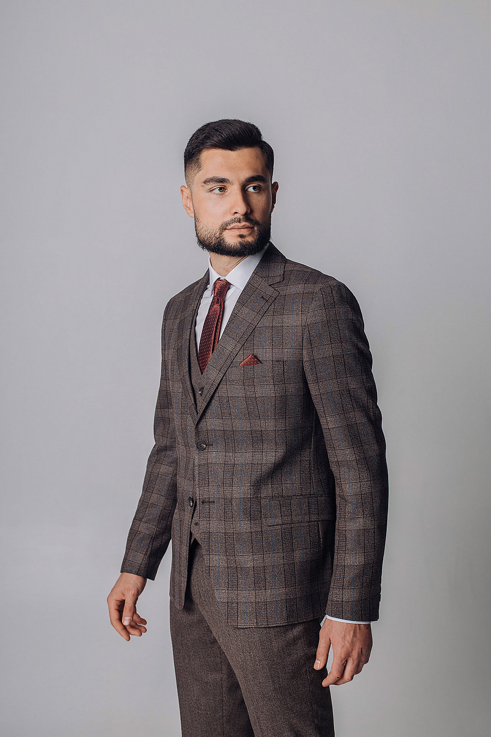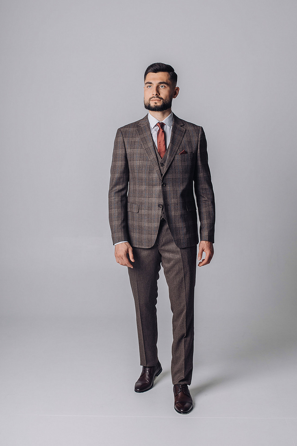 Мужской костюм тройка коричневого цвета текстурный