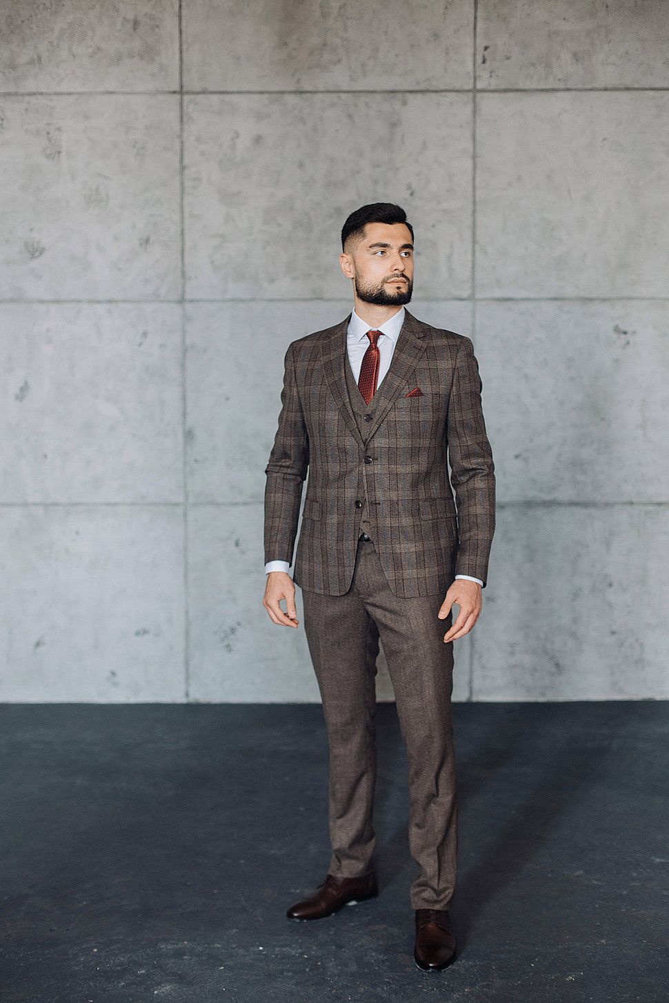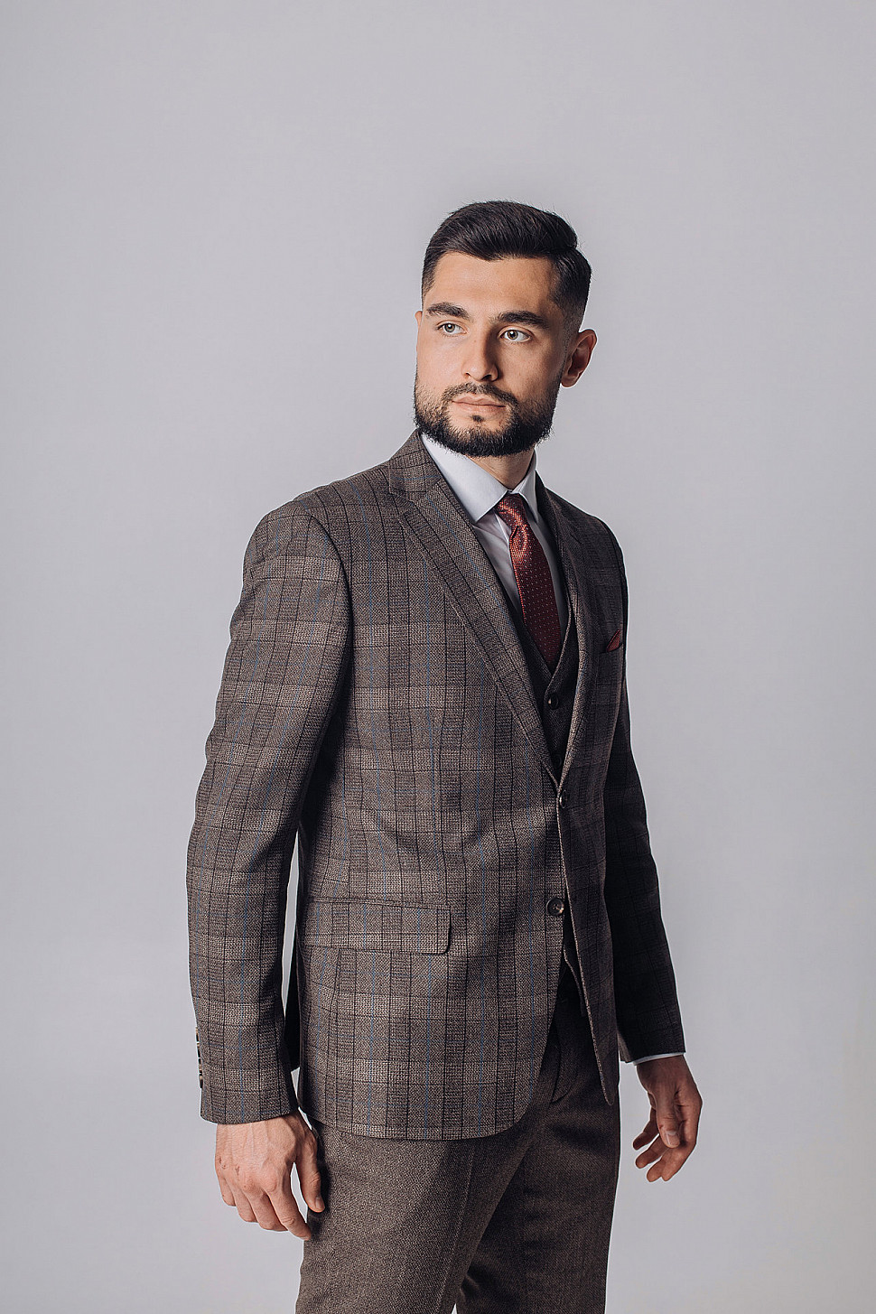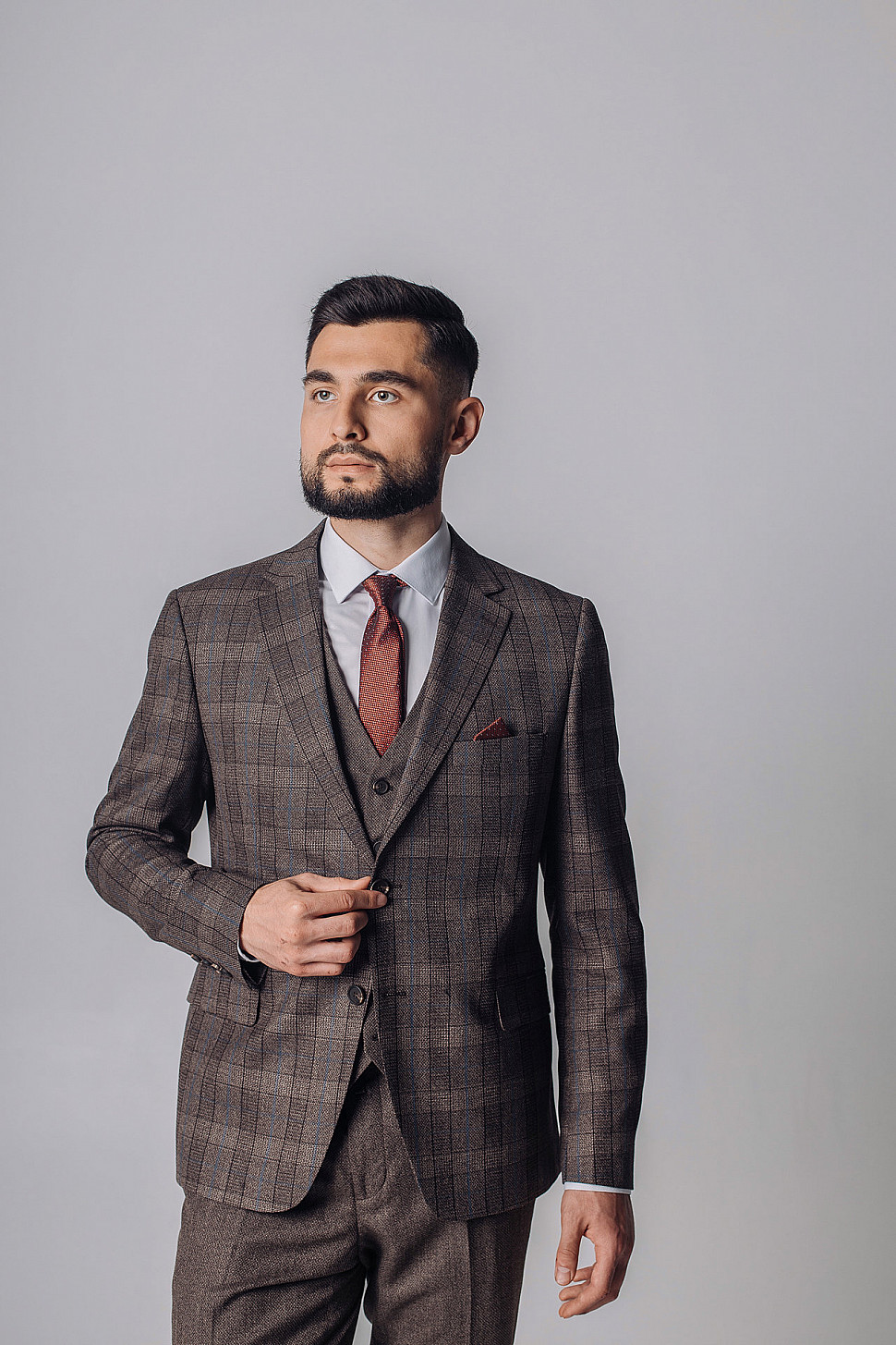 Мужской костюм тройка коричневого цвета текстурный