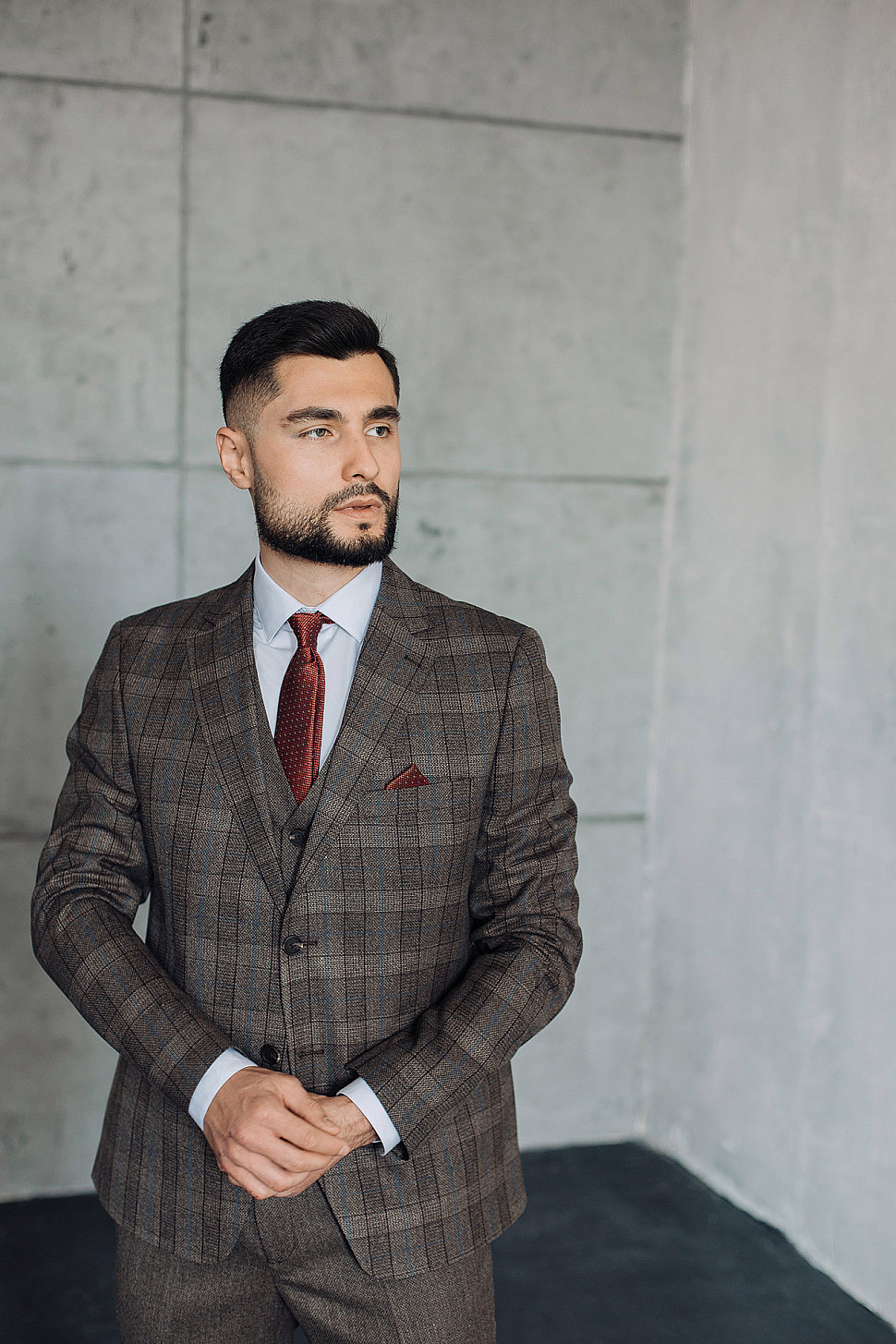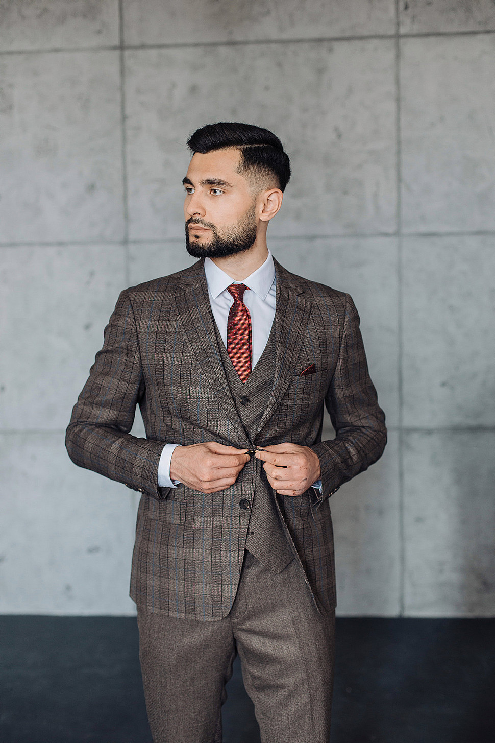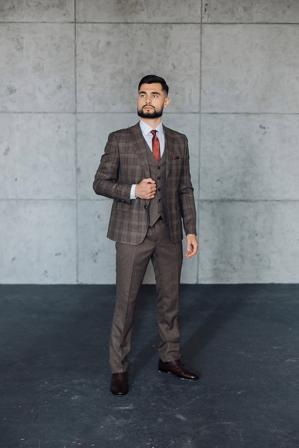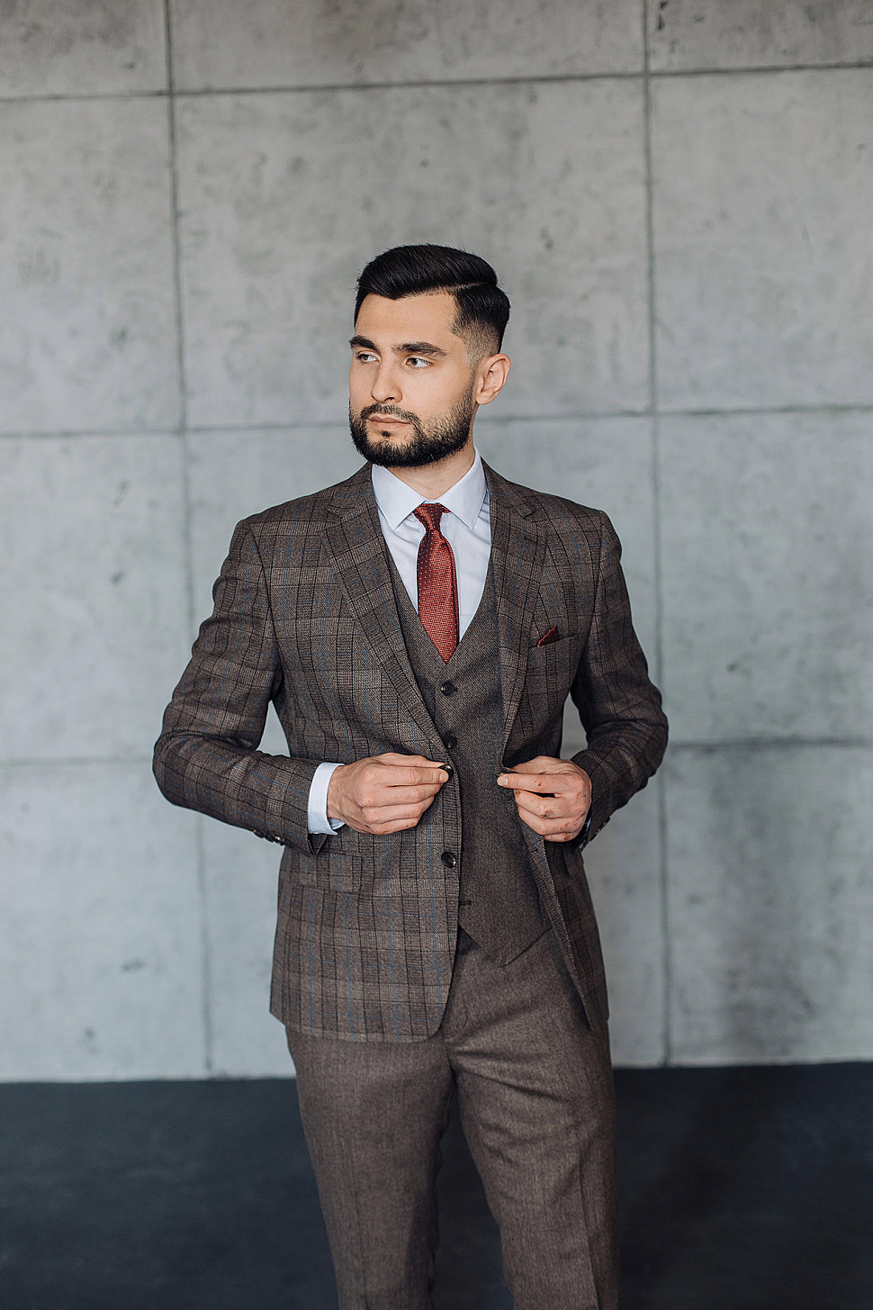 Мужской костюм тройка коричневого цвета текстурный