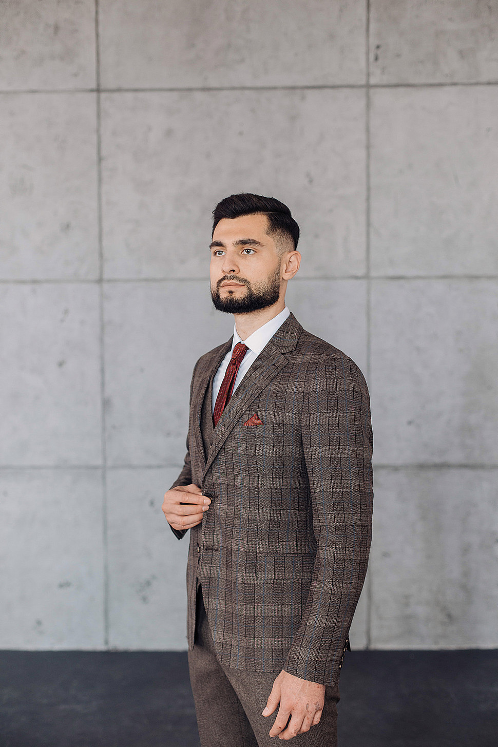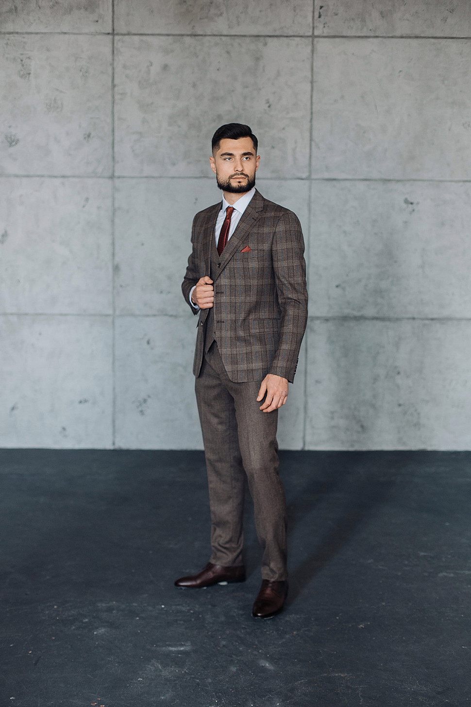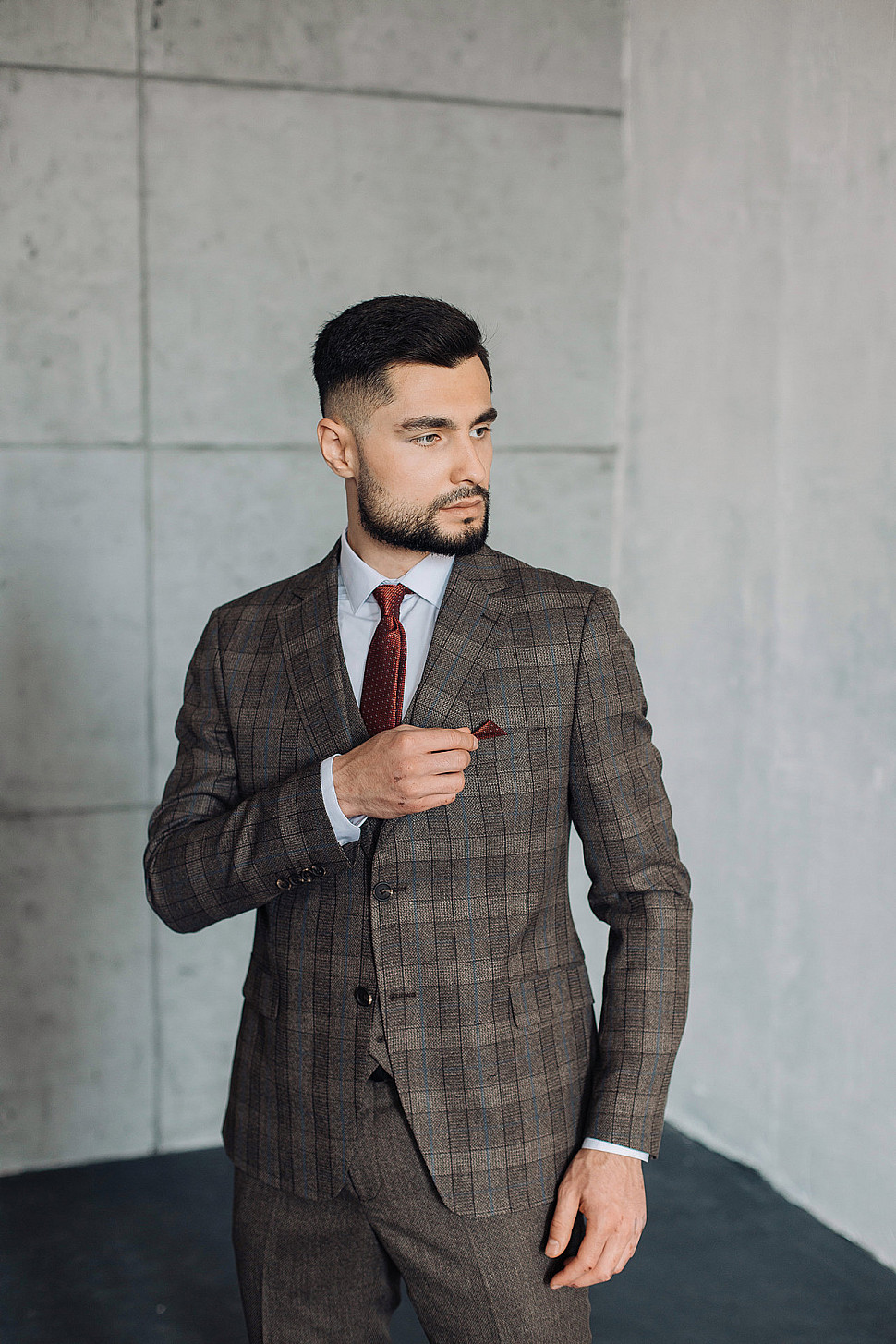 Костюм мужской тройка темно-бордового цвета фактурный