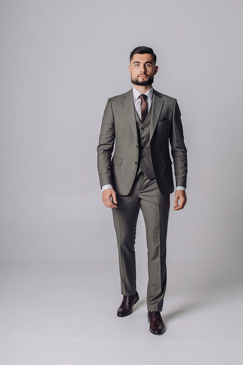 Костюм мужской тройка темно-бордового цвета фактурный