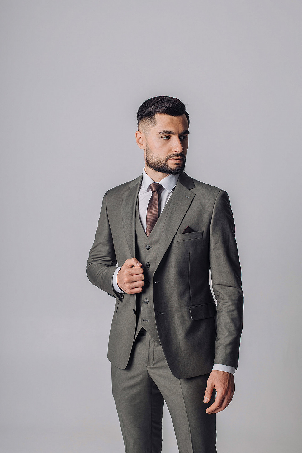 Мужской костюм тройка однотонного коричневого цвета