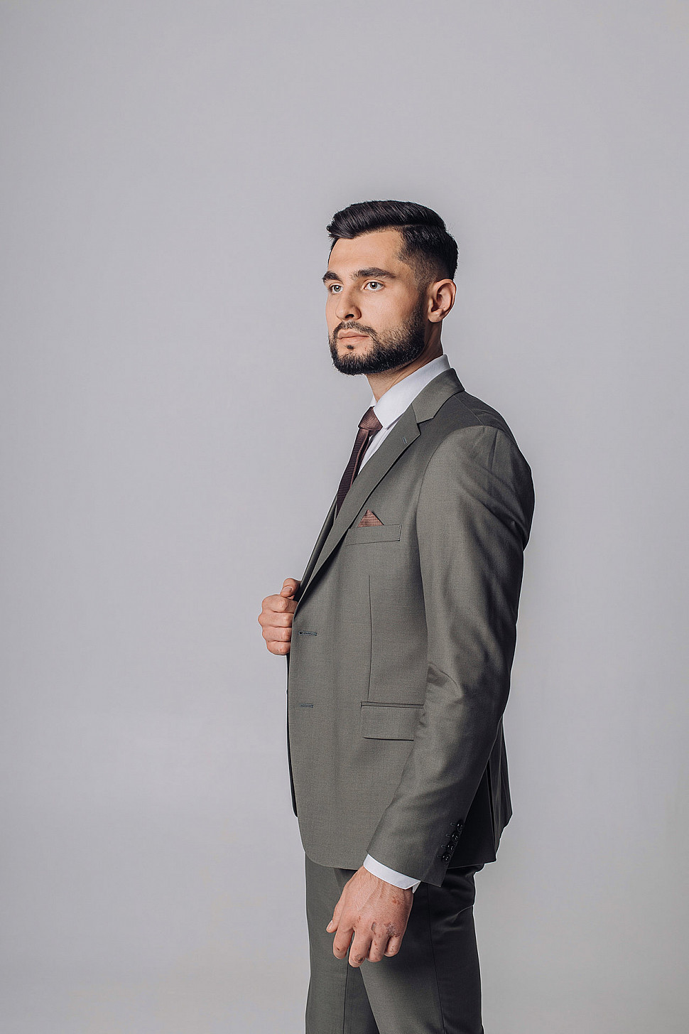 Мужской костюм двойка графитового цвета с накладными карманами