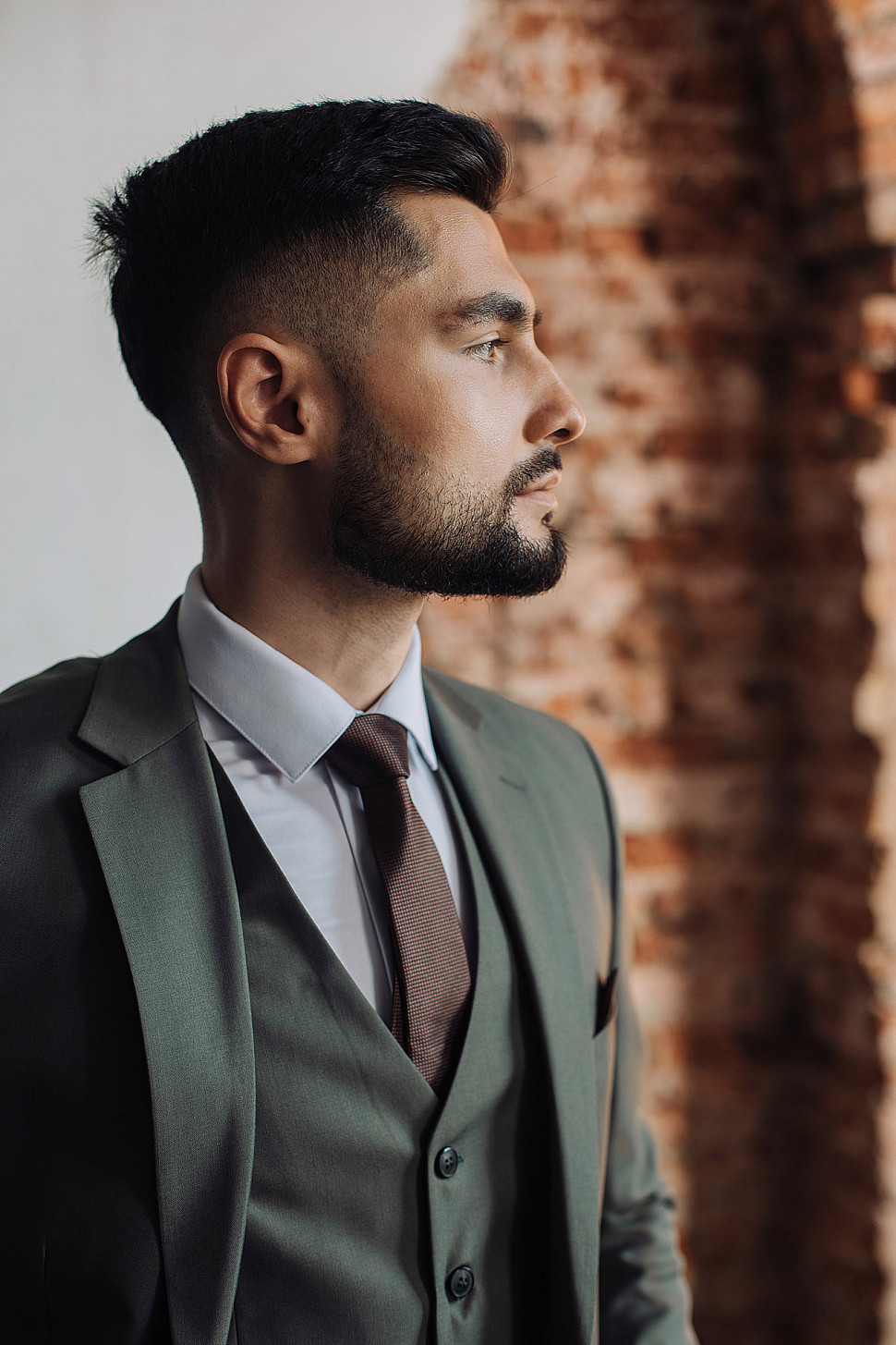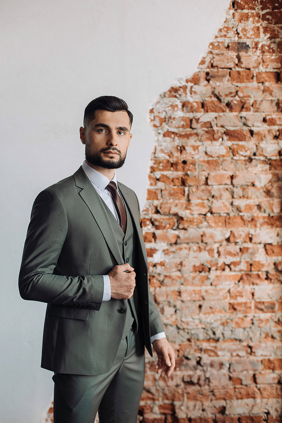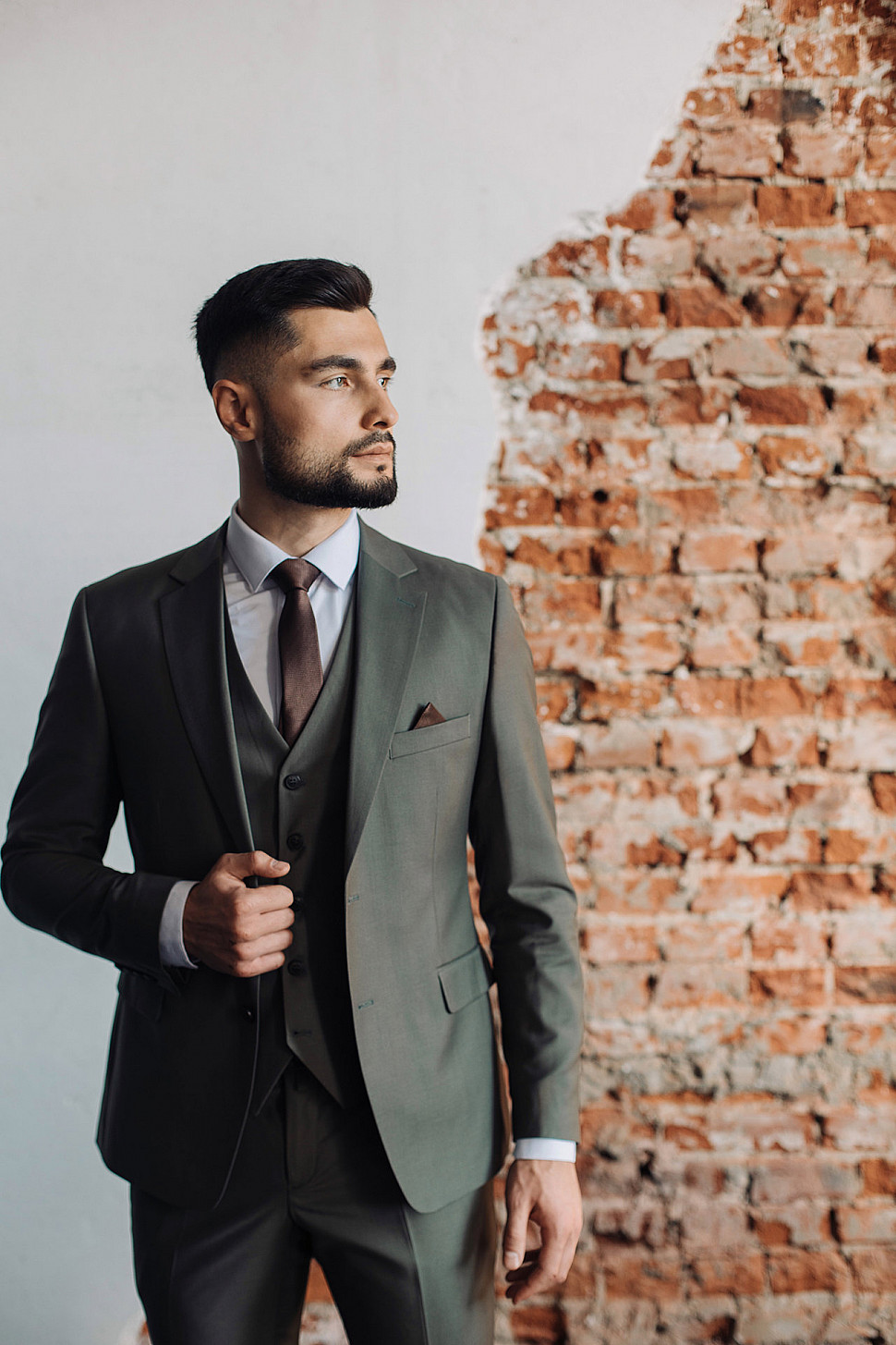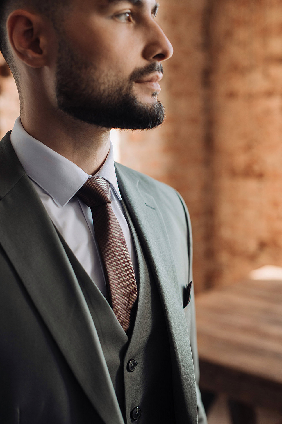 Мужской костюм тройка коричневого цвета текстурный