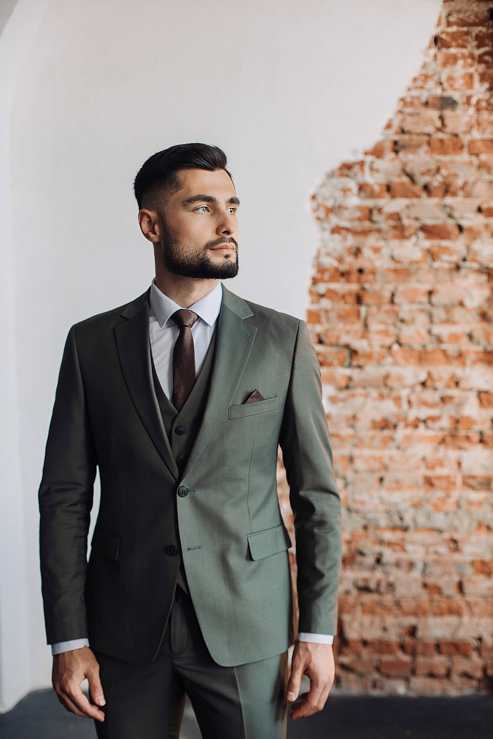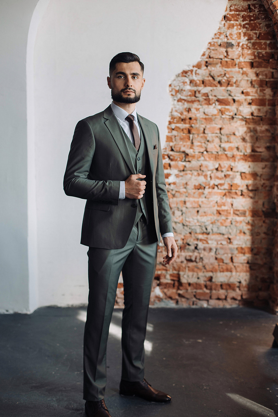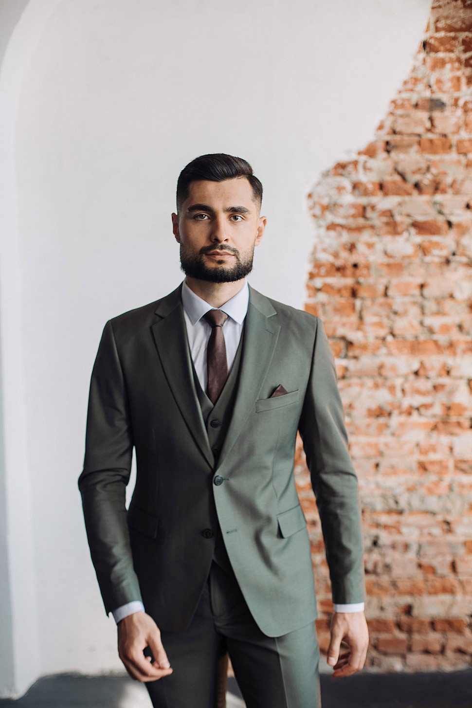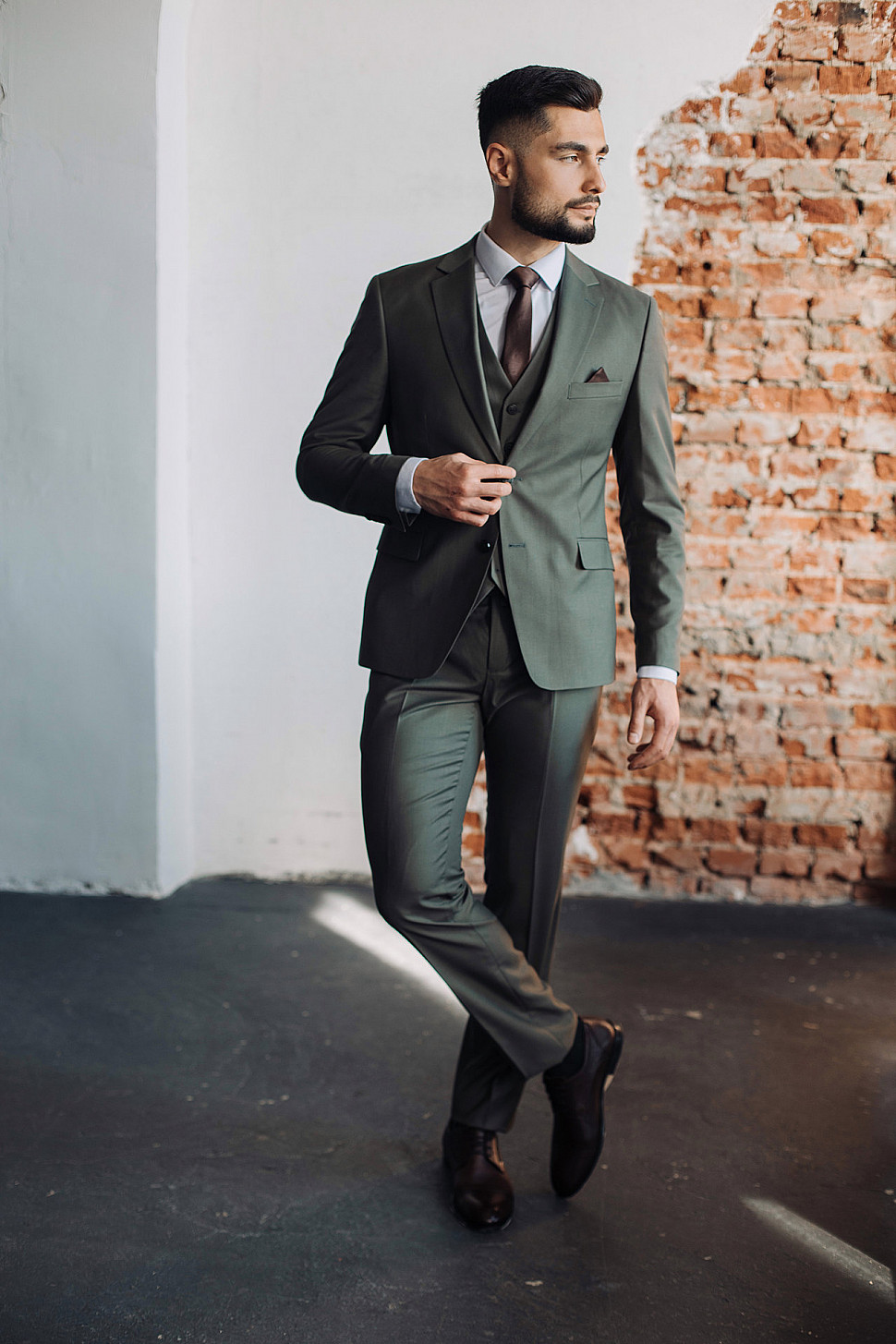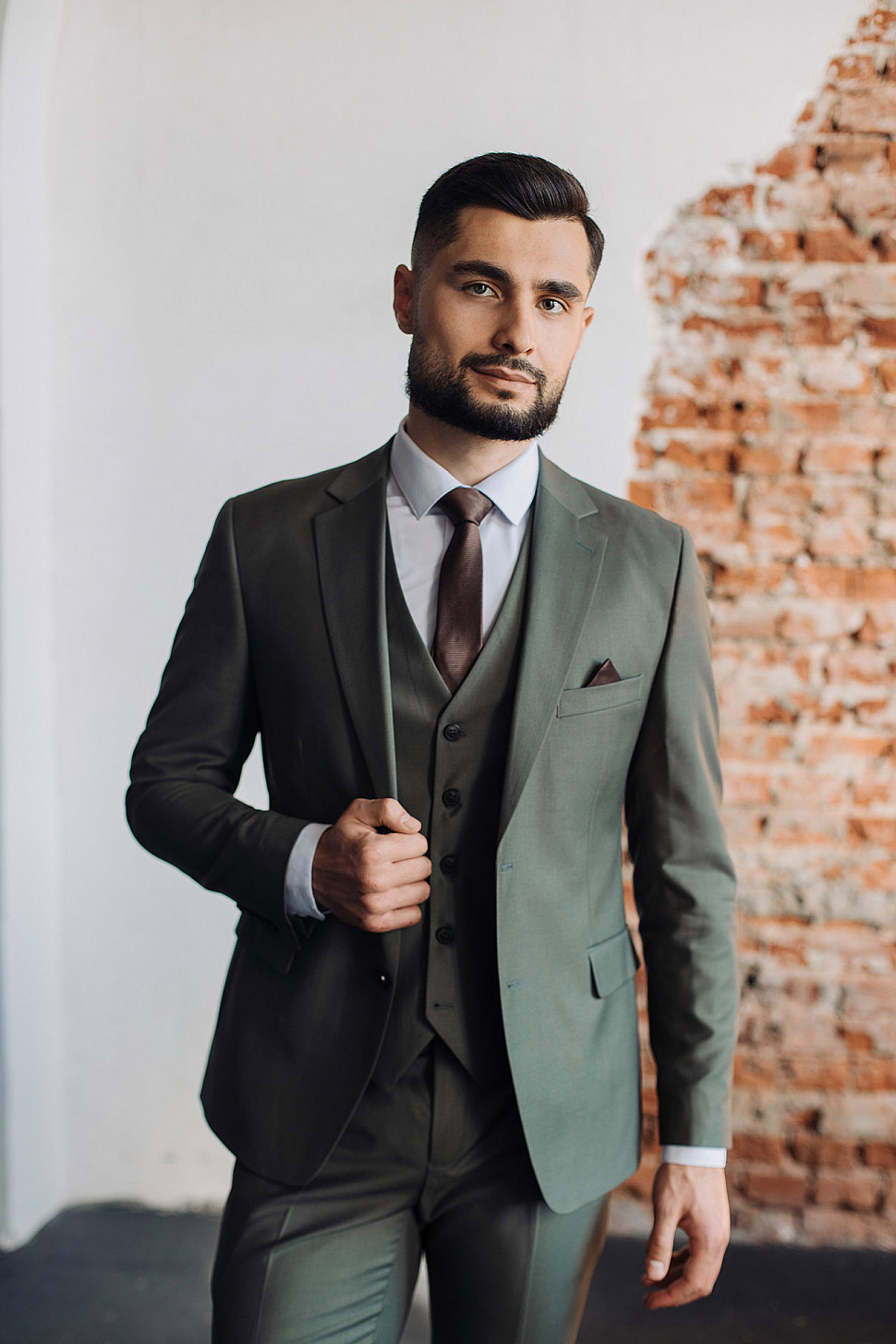 Костюм мужской двойка оливкового цвета