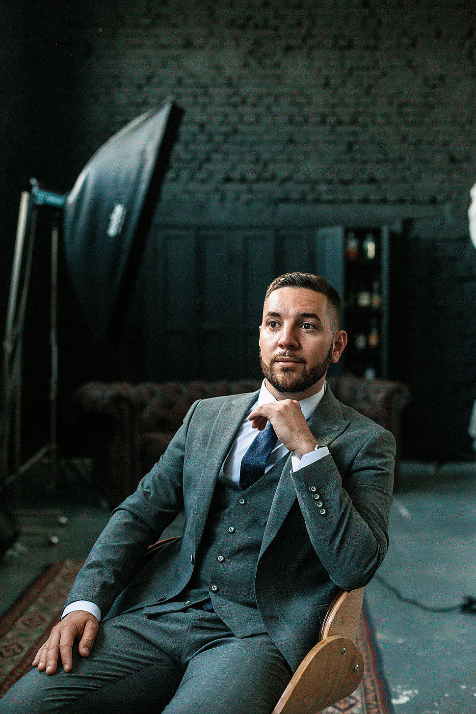 Мужской костюм тройка серого цвета фактурный
